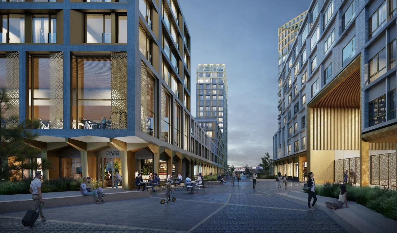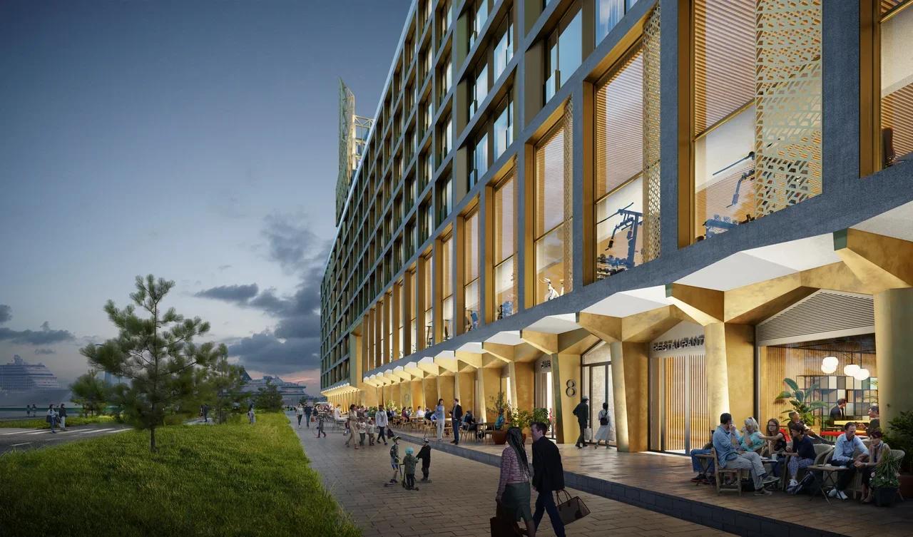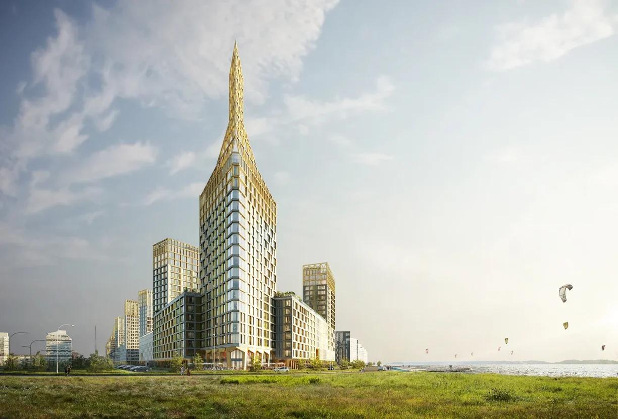 Ансамбль комплекса выполнен разновысотными объемами, задающими динамику всей постройке, а привычная для города сетка кварталов связана единой цепочкой жилых и общественных пространств. Лаконичность – это характер, который качественно выделяет проект на фоне окружения. Объемно-пространственная композиция транслирует легкость и воздушность, присущие прибрежной территории, а функционализм становится неотъемлемой сущностью комфортной жизни. Монументальность фасадов в сочетании с асимметрией золотых шпилей и наверший делает проект визитной карточкой панорамы Финского залива.