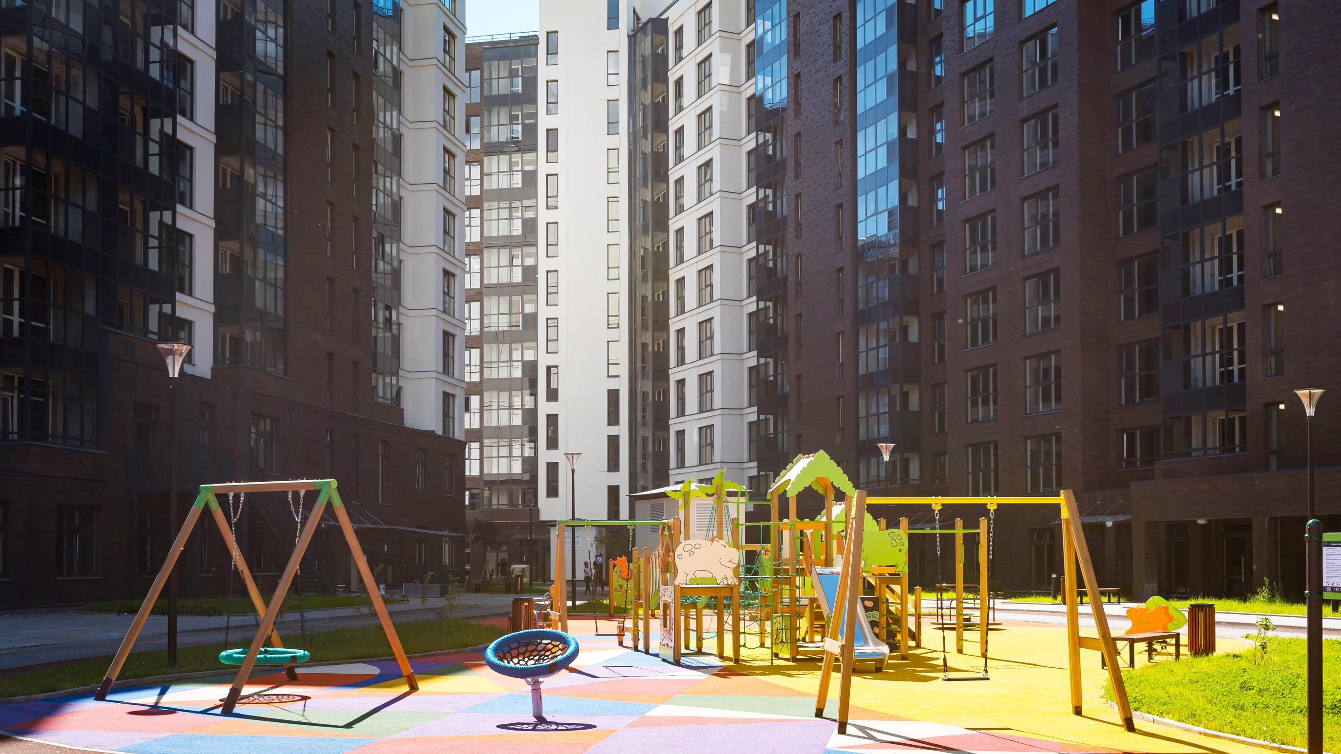 Поэтому на всей территории «Первого квартала» мы создаём условия максимального комфорта для детей. Этому способствуют безопасные покрытия, ограждения, приватные дворы без машин, круглосуточное наблюдение и зелёная среда.